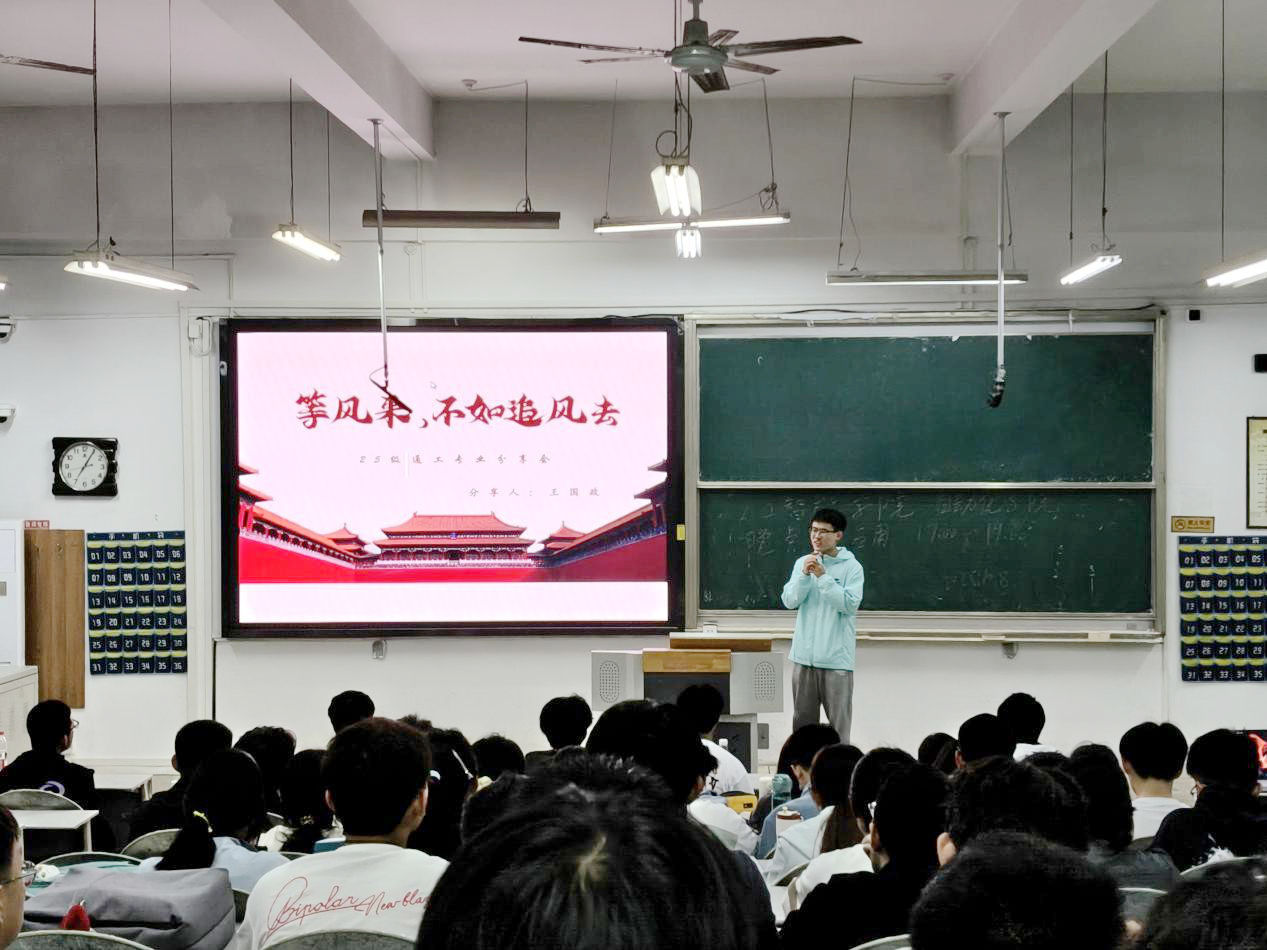 王国政校友以《等风来不如追风去》为题,结合自身备战考研叠加学科竞赛的亲身经历,从目标确立、知识获取、心态建设、资源利用、效率提升等方面,详细阐述了如何高效学习、科学备赛。鼓励学弟学妹们找到适合自己的学习节奏与路径,不断锤炼专业技能,勇于挑战未知领域,为长远职业发展筑牢根基。