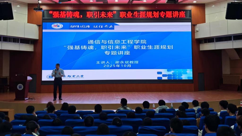 (通讯员 刘佳璇)为引导低年级学生科学规划职业生涯、明确发展方向,提升自身核心竞争力,10月30日下午,通信与信息工程学院在图书馆国际会议中心举办“强基铸魂,职引未来”职业生涯规划专题讲座。讲座邀请学院原院长谢永斌教授主讲,2024级、2025级本科生参加活动。学院党委书记田卫蒙主持讲座。